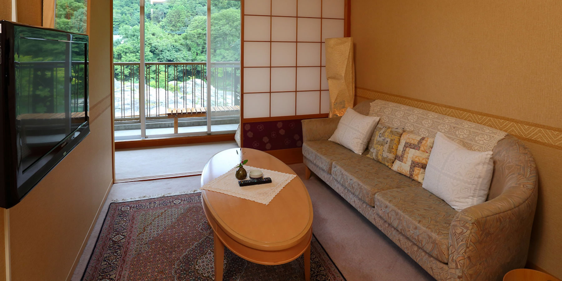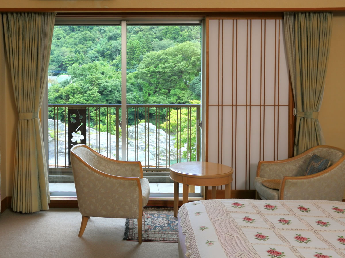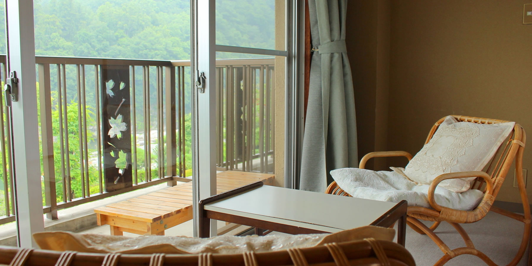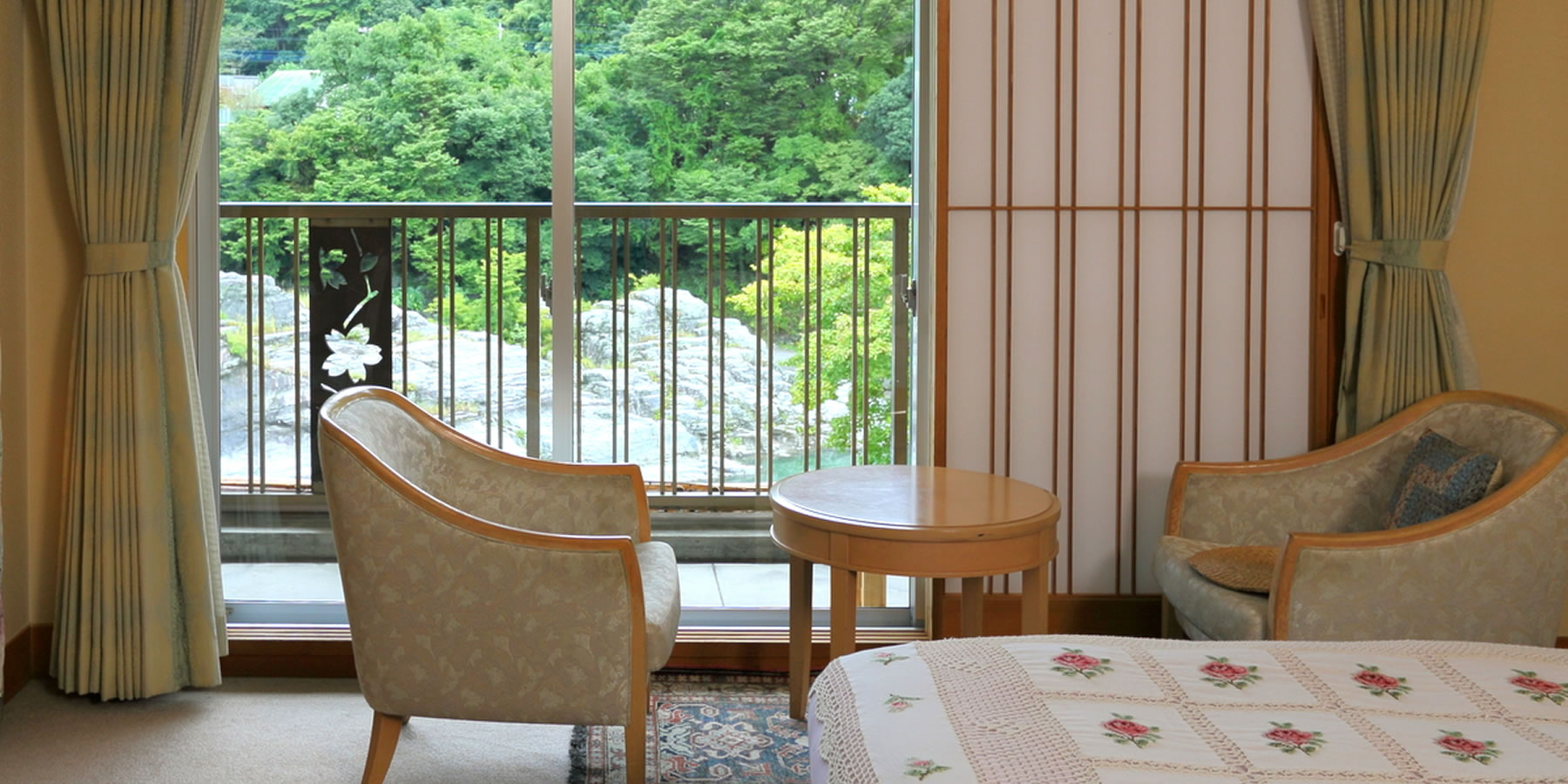 ベランダに出れば、岩畳を流れる荒川の瀞(とろ)を望み、耳を澄ませると荒川下流の瀬音が聞こえてきます。気品ただよう優雅な造りのお部屋ですので、ファミリー利用はもちろん、記念の特別なご旅行や慶事などのご利用もオススメです。